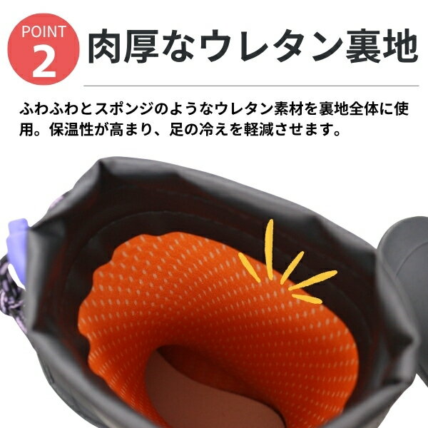 ブランド:WILD TREE ワイルドツリー商品名/品番:AK114素材:アッパー:合成ゴム、アウトソール:合成ゴムワイズ(横幅):標準的な2E(EE)相当取り扱いサイズ:19cm 20cm 21cm 22cm 23cm 24cm靴の詳細:(21cm 採寸)ソール高:約 3.5 cm履き口までの高さ:約 29.0 cm(ソール部分も含む)履き口周り:アジャスターで調節できます重量:約 580 gカラーブルー 水色パープル 紫色おすすめのサイズ:細身、普通の方→「標準サイズ」甲高、幅広の方→「標準サイズ」こちらのアイテムの足入れは標準です。 柔らかな素材だから柔軟性&屈曲性バツグン。足の動きに合わせて柔軟にしなるので、疲れにくく快適な歩行をサポートします。ふわふわとスポンジのようなウレタン素材を裏地全体に使用。保温性が高まり、足の冷えを軽減させます。合皮のフード部分は絞れる構造になっており、雨や雪の侵入を防ぎ、足が濡れるのを防止します。ワンタッチのストッパーだからお子様も安心です。ブランド:WILD TREE ワイルドツリー 商品名/品番:AK114 素材:アッパー:合成ゴム、アウトソール:合成ゴム ワイズ(横幅):標準的な2E(EE)相当 取り扱いサイズ:19cm 20cm 21cm 22cm 23cm 24cm 靴の詳細:(21cm 採寸) ソール高:約 3.5 cm 履き口までの高さ:約 29.0 cm(ソール部分も含む) 履き口周り:アジャスターで調節できます 重量:約 580 g カラー ブルー 水色 パープル 紫色 おすすめのサイズ:細身、普通の方→「標準サイズ」 甲高、幅広の方→「標準サイズ」 こちらのアイテムの足入れは標準です。 柔らかな素材だから柔軟性&屈曲性バツグン。 足の動きに合わせて柔軟にしなるので、疲れにくく快適な歩行をサポートします。 ふわふわとスポンジのようなウレタン素材を裏地全体に使用。保温性が高まり、足の冷えを軽減させます。 合皮のフード部分は絞れる構造になっており、雨や雪の侵入を防ぎ、足が濡れるのを防止します。ワンタッチのストッパーだからお子様も安心です。