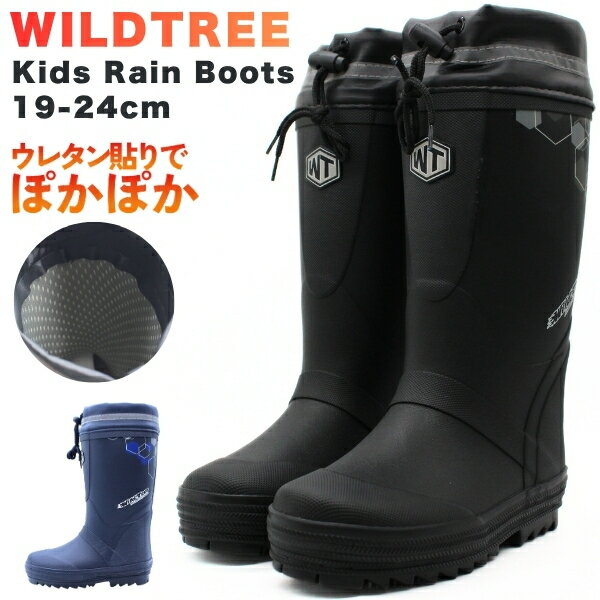 レインブーツ キッズ ジュニア 子供 長靴 雨靴 黒 ブラック 防水 防風 防寒 雨 雨の日 スノーブーツ 冬 雪 雪遊び ウレタン 暖かい あたたかい かわいい ガールズ 女の子 通学 通園 チェック ベルト ワイルドツリー WILDTREE AK114