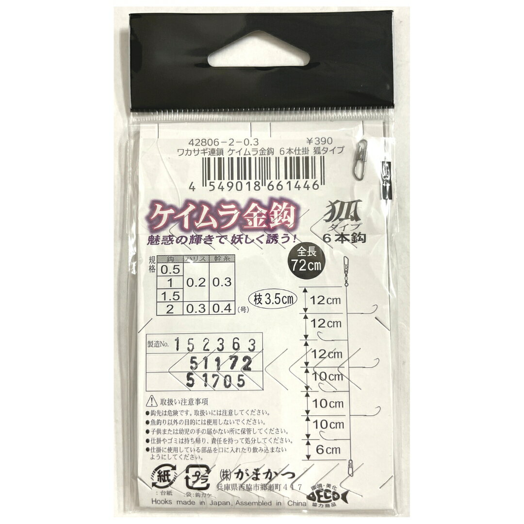 【SALE】【 予約販売】ワカサギ仕掛け がまかつ(Gamakatsu) ワカサギ連鎖 ケイムラ金鈎 W253 2号-0.3 5個セット 6本仕掛(狐タイプ) キツネ 送料無料 ネコポス便