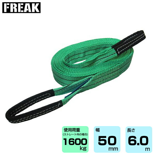 玉掛け作業に大人気のポリエステル繊維のスリングベルト、ナイロンスリングより伸びに強く安定した荷の吊り上げが可能です。 ソフトでクセがなく傷を嫌う荷物におすすめ、耐光性・耐久性・防腐性に優れ最高のコストパフォーマンスを実現しました。【仕様】 ・商品名:FREAKベルトスリング ・ベルトサイズ:幅25mm×長さ1m ・最大使用荷重:ストレート吊800kg、チョーク吊640kg ・安全係数:5(最大使用荷重×5=破断荷重) ・材質:ポリエステル100% ・欧州CE規格+GS&TUVマーク取得商品 ・生産物賠償責任保険(PL保険)付 ・販売元:株式会社フリーク ※商品改良の為、仕様・外観は予告なく変更する場合があります。【用途】 建築現場や資材の運搬など、表面加工を施した製品・傷や汚れを避けたい荷物等の玉掛け作業に最適。 レバーホイストの鎖延長・鉄骨加工・工場内製品移動・機械や自動車メンテナンスなどにもお勧めです。【安全上のご注意】 1、誤った操作や日頃の点検を怠れば、荷の落下など危険な状態になります。 2、使用方法・使用荷重を考慮し、余裕のある製品を選定してください。 3、玉掛け作業は労働安全衛生法に定められた有資格者が行ってください。 4、本製品は、化学薬品用ならびに耐熱用ではありません。 5、付属の説明書をいつでも読めるように保管し、熟読してからご使用ください。 6、注意事項を守らず、誤った使用上の事故や損害について、当社は一切の責任を負いません。