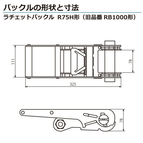 「陸・海」運送荷物の固定・荷崩れ防止にベルトラッシング、積荷の結束・運搬・地震対策などに最適です。 エンドレス形状・両端アイ形状・端末金具形状があり、さまざまな結束固定シーンに対応できます。【仕様】 ベルタイト REN-75H エンドレス形 ・バックル:ラチェット式 ・ベルト寸法:幅75×厚さ3.5mm ・ベルト長さ:8m ・最大使用力:50kN(5090kg) ・破断荷重:200kN ・ベルト色:ブルー ・生産物賠償責任保険(PL保険)付 ・販売元:東レインターナショナル【用途】 積荷の結束・運搬用、楽々締め付け!小気味よくカチカチ決まる。 ラチェット式タイプバックルとベルトの組み合わせトラック荷物の固縛に最適。【安全上のご注意】 1、誤った操作や日頃の点検を怠れば、荷の落下など危険な状態になります。 2、使用方法・使用荷重を考慮し、余裕のある製品を選定してください。 3、角張ったモノには当てものを、バックルが直接接する場合にはバックルプロテクターを使用してください。 4、本製品で玉掛作業はできません。また、化学薬品用ならびに耐熱用ではありません。 5、付属の説明書をいつでも読めるように保管し、熟読してからご使用ください。