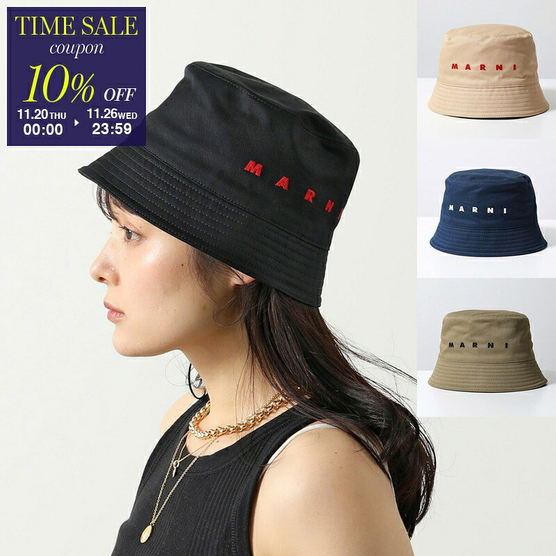 【ブラックフライデー・11/26-23:59迄10%OFFクーポン】MARNI マルニ バケットハット CLZC0110S0 UTC311 レディース コットン ロゴ刺繍 帽子 カラー4色【cp_ten】