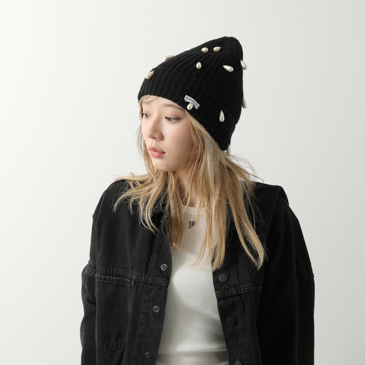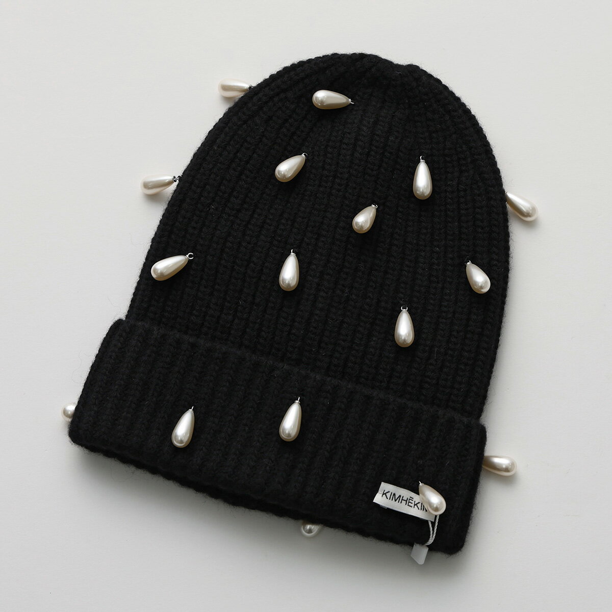 KIMHEKIM キムヘキム ニット帽 PEARL EMBELLISHED BEANIE ZF3HT01 レディース パール ビーニー ニットキャップ ウール リブ ロゴ 帽子 カラー2色