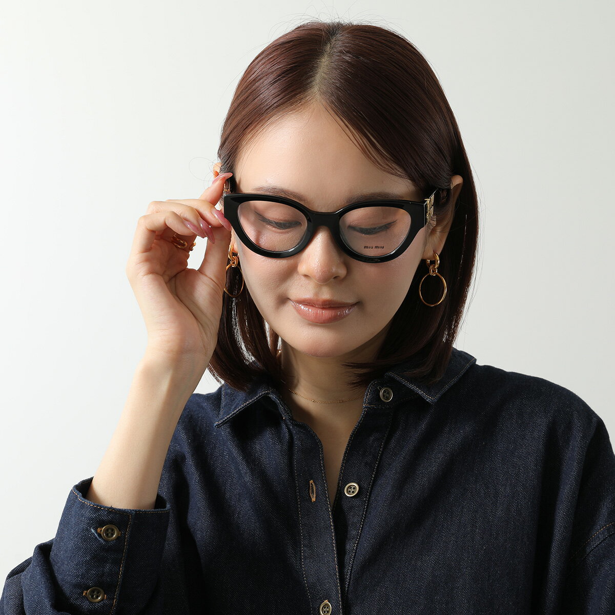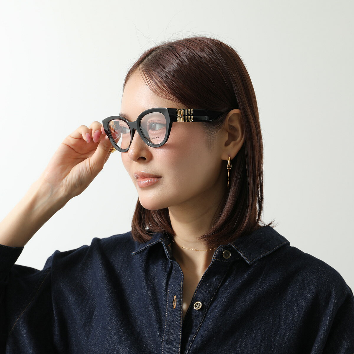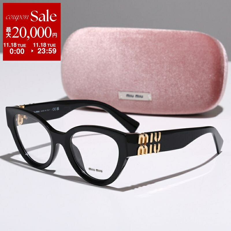 【11/18限定・最大2万円OFFクーポン配布中】MIUMIU ミュウミュウ メガネ VMU 01V キャットアイ型 セルフレーム フルリム 黒縁 めがね 眼鏡 メタルロゴ アイウェア 伊達メガネ 1AB-1O1/BLACK