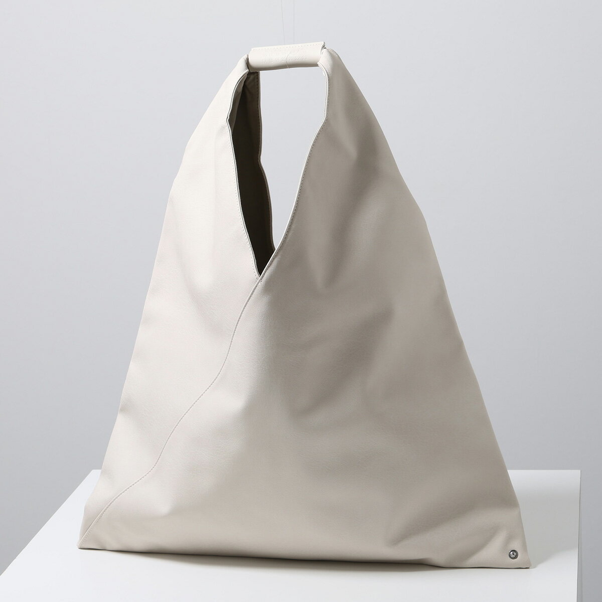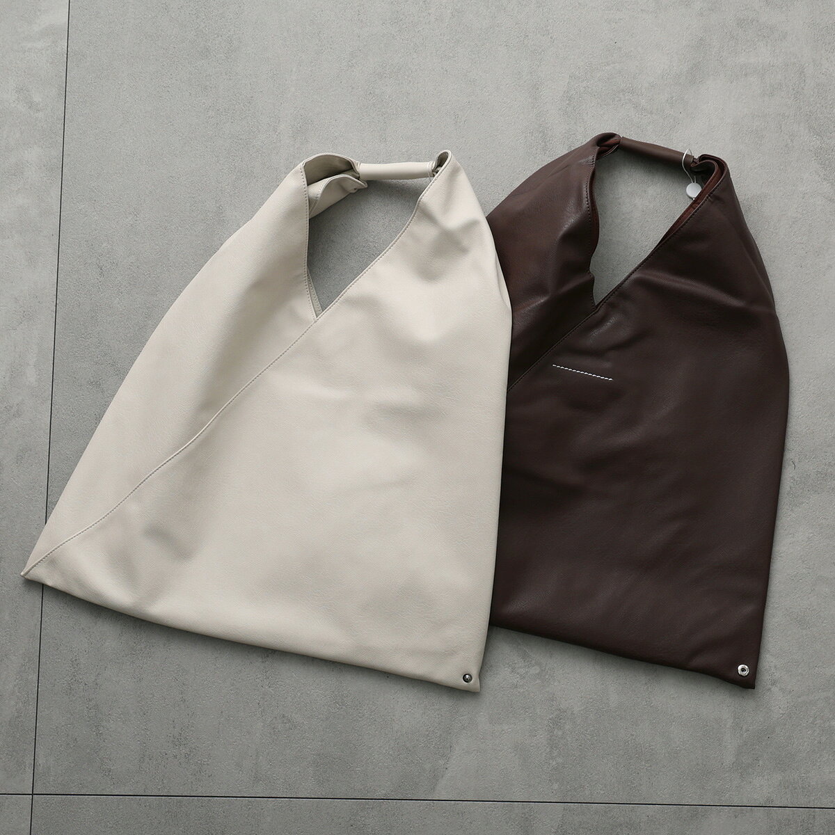 商品説明 ・定番アイコンの「Japanese ジャパニーズ ミディアム」 ・折り紙から着想を得た三角形のフォルムが特徴 ・肌触りの柔らかなレザー調仕上げ ・両サイドのボタンでフォルムを変形させることが可能 ・スナップボタン開閉 ・内側にスナップボタン開閉ポケット×1 ・A4サイズも収納可能 ・バックには1本の白いステッチ アイテム メンズアイテム≫バッグ≫トートバッグ ブランド MM6(エムエムシックス メゾンマルジェラ) 型番 S54WD0039 P8396 サイズ(cm) 縦 35 (全長)52 横 49 重量 520g ※商品の計測はcm単位です。商品によって個体差や計測の方法により2~3cmの誤差が出る場合がございます。 ⇒ サイズガイドはこちら カラー T1047/アイボリーT2164/ブラウン 素材 本体:ポリウレタン100% 切替:カーフレザー100% 裏地:コットン100% ⇒ 取り扱いに関するご注意 付属品 保存袋⇒ 付属品についてはこちら 備考 ※サイズ比較品番 【S54WD0039/ミディアム】【S54WD0043/スモール】【SB6WD0013/ミニ】【SB6WD0026/クロスボディ】 お問い合わせ品番 371014097 ⇒ ギフトラッピングのご注文はこちらから ⇒ 返品・交換についてはこちら トライアングル S54WD0039P8396T1047 S54WD0039P8396T2164
