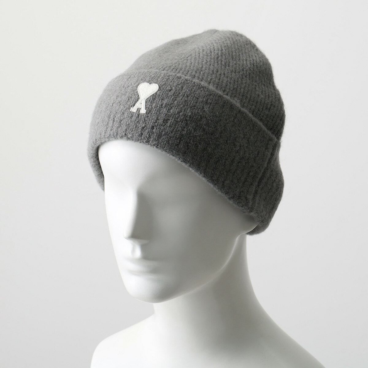 ami paris アミパリス ニット帽 UBO005.KN0135 レディース ニットキャップ ビーニー アルパカ ウール ハートロゴ リブ 帽子 058/GRIS/ECRU