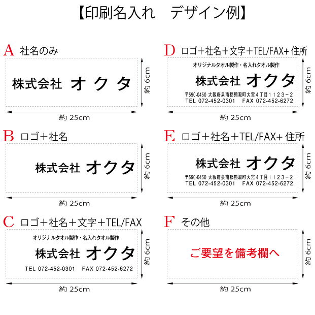 商品について 弊社専属の大阪泉州工場にて生産。 メガモールオクタが直売にてご提供しています。日本製タオル 白タオル タオル片袖に名入れ加工・熨斗に印字加工・1枚ポリ袋入(名刺入れポリ袋)のタオルセット のし印刷+タオル印刷名入れ 加工後1枚づつポリ袋に入れ仕上げた状態でお届け致します。 【ご注意事項】 初めて印刷名入れを行う場合、タオル印刷用の型代金5500円(税込み)が別途必要となります。 ◉納期について デザインの確認を頂き校了頂いてから約3週間の製作期間を頂いています。出来次第、ご連絡を差し上げています。 納期についてのご要望がある場合、お問い合わせ頂きますようお願い申し上げます。 (11月から12月は繁忙期となります。 この時期での製作期間は長くなる場合がありますのでご注文は早々のお手配をお勧めします。)
