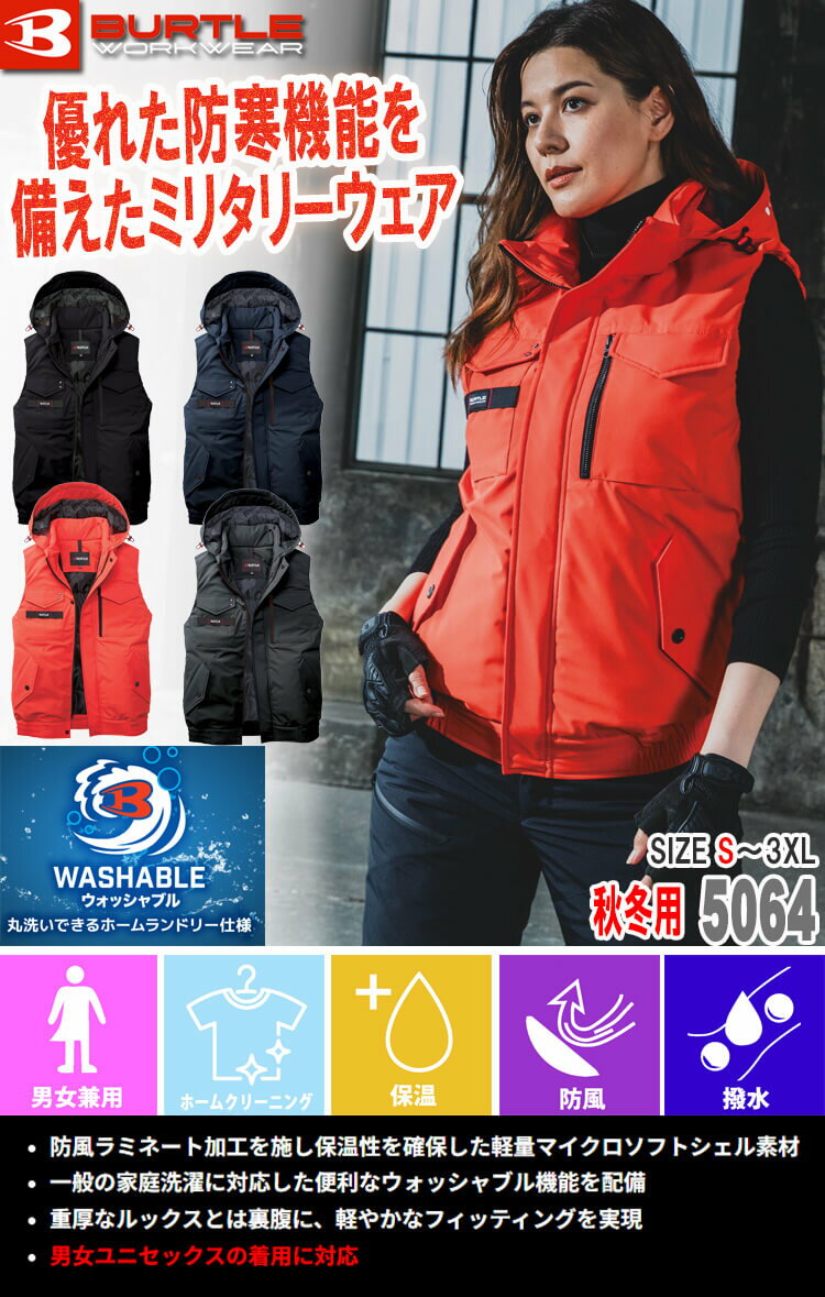 [即日発送]BURTLE バートル 防寒ベスト 5064 秋冬用 軽防寒 サイズS〜XL 2025年秋冬新作 作業服 作業着 保温 防風 ストレッチ 男女兼用 ワークウェア メンズ レディース ユニセックス おしゃれ 人気モデル