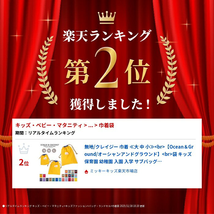 無地/クレイジー 巾着 ≪大 中 小≫【Ocean&Ground/オーシャンアンドグラウンド】袋 キッズ 保育園 幼稚園 入園 入学 サブバッグ コップ マスク 歯ブラシ 体操服 上履き オーシャン&グラウンド
