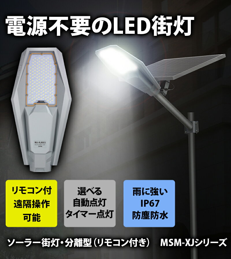 楽天ランキング1位! LED 【リモコン付き&最長18ヵ月保証】ソーラー街灯 1151ルーメン〜 分離型人感&光センサー機能搭載 大容量リチウム電池、屋外用防犯灯/庭先灯/駐車場灯/歩道灯に最適 msm-XJ