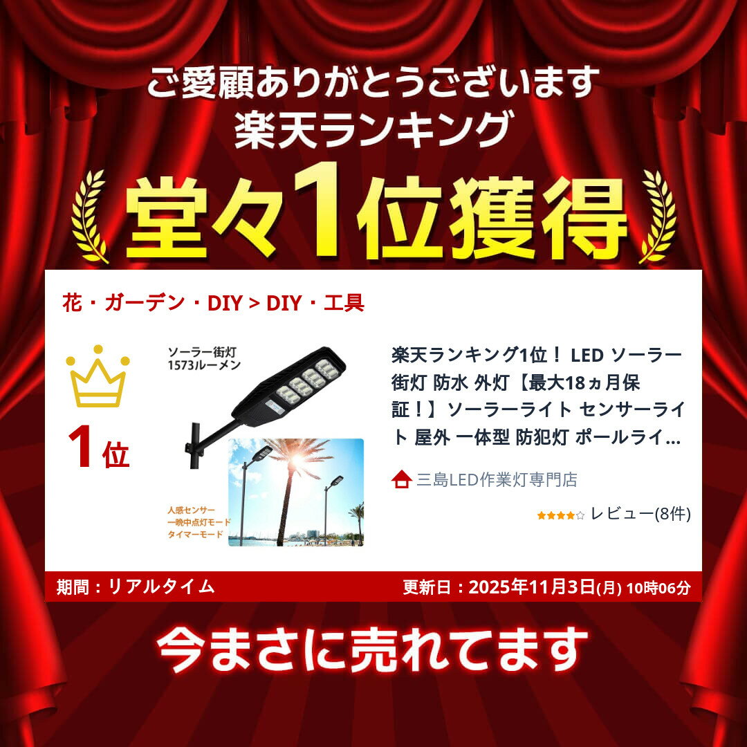 楽天ランキング1位! LED ソーラー 街灯 防水 外灯【最大18ヵ月保証!】ソーラーライト センサーライト 屋外 一体型 防犯灯 ポールライト 屋外 明るい 一体型ストリートライト ポール灯 人感センサーと光センサー リモコン操作 街路灯 庭先灯 駐車場灯 歩道灯