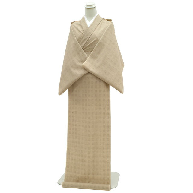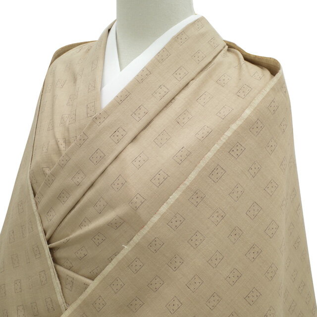 【中古】 仕立て無料! 美リペア 重要無形文化財 本場結城紬 縦横絣 地機 リサイクル 解き反物 洗い張り済 正絹 ブラウンベージュ地 茶ベージュ 四角 十字絣 カジュアル 春 秋 冬 最大身丈160 最大裄70 Lサイズまで みやがわ ar0113
