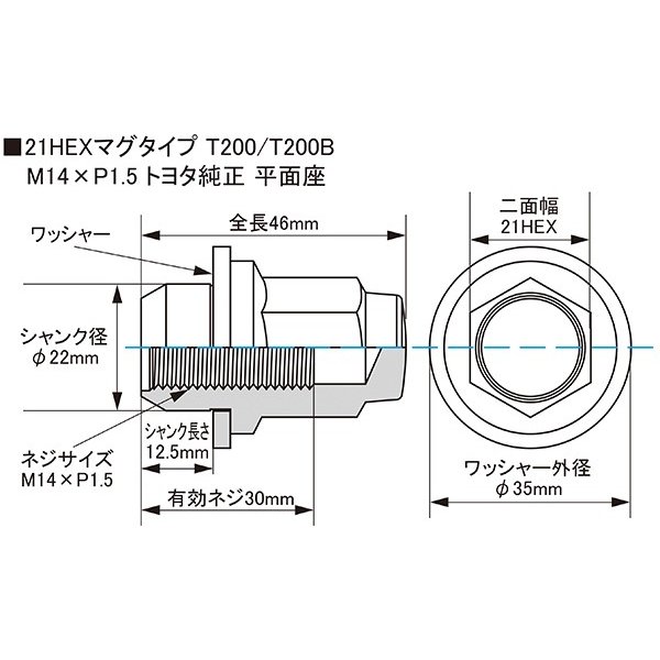 協永産業、KYOEI製 Lug Nut ホイールナット 袋タイプ トヨタ純正アルミホイール専用 【内訳】 サイズ 【M14×P1.5 21HEX】 数量 【ホイールナット 24個 : 1SET】 カラー 【ブラック(黒)】 全長 【約46mm】 材質 【スチール】 取付座 【平面座】 【トヨタ】 ランドクルーザー[100系/200系] 【レクサス】 LS[460系/600系/500系]/LC[500系]▼商品説明を最後までお読みください▼ 商品内容 : Lug Nuts Mag Type ナット形状 袋ナット M14 トヨタ純正ホイール専用 数量 ホイールナット 24個 サイズ M14 × P1.5 21HEX カラー ブラック(黒) ナット全長 46mm 有効ネジ 30mm 取り付け座 平面座 適合車種 【トヨタ】 ランドクルーザー[100系/200系] 【レクサス】 LS[460系/600系] / LC[500系] ※純正ホイール用ナット ・保証無し メール便 発送です。 ・メール便発送は全国送料無料です。 [北海道 / 沖縄 / 離島 も送料無料です。]