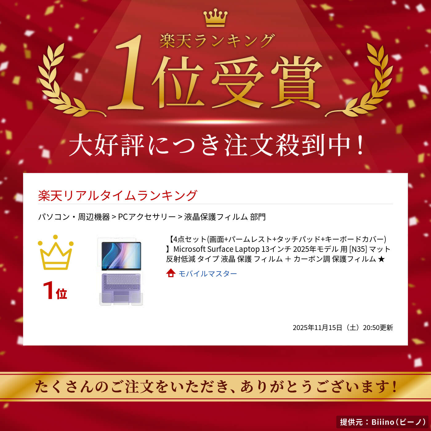 【4点セット(画面+パームレスト+タッチパッド+キーボードカバー)】Microsoft Surface Laptop 13インチ 2025年モデル 用 [N35] マット 反射低減 タイプ 液晶 保護 フィルム + カーボン調 保護フィルム ★