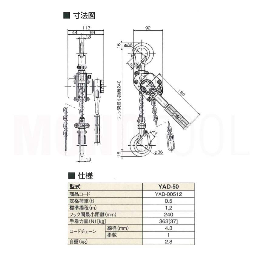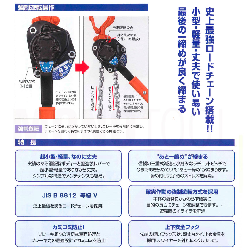 在庫有り★即出荷! 象印 強力レバーホイスト YAD-50 0.5t 標準揚程1.2m YAD50