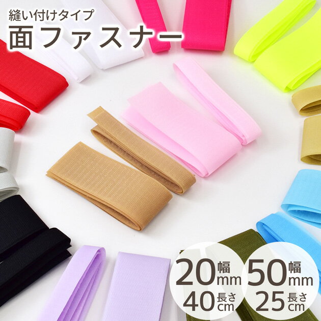 面ファスナー 縫い付けタイプ 20mm幅 40cm / 50mm幅 約25cm 12色 ■ 接着 テープ 両面 結束 バンド 材料 資材 20mm 50mm 2cm 5cmバッグ 雑貨 入園 入学 ベビー 介護 ペット 手縫い ミシン ハンドメイド 手芸 手作り ■