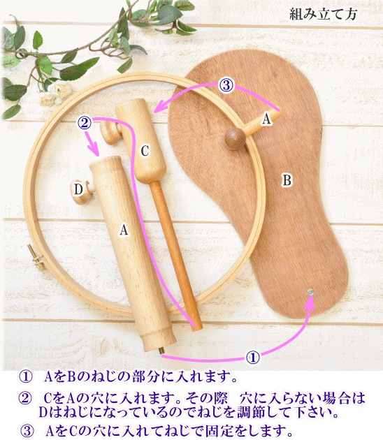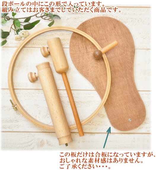 ★ 3,980円以上ご注文で、宅配便・ゆうパケット 送料無料 ★【1】日本郵便 ゆうパケット(メール便) 全国一律 280円■ポストへのお届け(盗難、未投函などの補償なし。日時指定不可。)■厚み3cm、3辺合計60cm以内まで★規定サイズ内に収めるコツ★商品名上に記載の 「#ゆうパケ○点可」 の数字をご参考に、上手にお買い物なさってください。※同一商品を注文した場合、何点まで入るかの目安の数字となります。【下記の場合、宅配便に変更させていただきます↓】・規定サイズを超える場合★同時に送料も変更させていただきます。■「ゆうパケット送料無料」と記載のある商品で、送料無料希望の方はゆうパケットをご選択ください。ただし、「ゆうパケット送料無料」商品をご注文でも、宅配便希望の場合は、宅配便をご選択ください(送料の差額が発生します)。------------------------【2】日本郵便 ゆうパック(宅配便) 全国一律 650円日時指定OK!■3,980円以上のお買い上げでも、配送方法「ゆうパケット」希望にチェックがある場合は、ゆうパケットでのお届けとなります。【ゆうパケット・ゆうパック共通注意事項】※ご注文後に、複数通に分けてのご発送はできかねます。■ロット(生産時期)が異なると、同じ品番のものでもカラー、サイズ、品質が変わります。同じ種類、材料、染料を用いても製造過程において完璧に同じものを再現することが難しく、このような現象はどの商品にも見られます。 詳しくはこちら→前回とは色や幅が異なるという理由での、返品交換はお断りをしていますのでご理解ください。■領収書、明細書は同封しておりません。(エコ、個人情報保護、配送のスピード化などの理由によるため)【1】領収書商品発送後、購入履歴画面の「領収書を発行する」ボタンからPDFで発行できます。(※後払い決済を除く)▼下記の場合は、領収書の発行は出来ません。【後払い決済】運収納印のある払込受領書が公的な領収書となります。【クレジット】お客様ご契約のクレジット会社が発行するご利用明細書が代わりとなります。【コンビニ決済】払込受領証が領収書となります。【全額ポイント支払い】ご請求金額が0円のため発行できません。------------------------【1】明細書▼明細書をお入れしておりません。・「ご注文確定メール」が明細書の代わりとなります。・楽天会員様はご購入履歴からもご確認いただけます。------------------------当店からのメールを必ず受信していただきますよう、「ドメイン指定受信解除」していただきますようお願いいたします。(my-mama@d5.dion.ne.jp と、 auc-my-mama@shop.rakuten.co.jp)【1】商品のカットに関しまして・生地、ブレード、ゴム等、長さを指定してのカットのご依頼はお受けできかねます。(例:1Mを5枚に分けて、1M・2Mを1枚ずつ、など)・カット販売の商品に関しましては、ご注文いただいた数量をつながった状態でお届け致します。(ご注文数が多い場合は途中でカットしたものをお届けする場合がございます。)刺繍するとき、あるとうれしい刺繍枠です。中国製ですので、ヨーロッパ製のものと比べると底板がちょっぴり残念・・・ちょっぴり安っぽく見えてしまいますが、使い勝手は 高さも角度も調節できて、いい感じ・・・です。足に挟んでいただいたり底板を固定していただけば両手を刺繍に集中させて作ることができます。高さも角度も調節できます。角度はねじの調節で360度調節可能です。高さは40センチほどまで調節可能です。 素 材木製 生 産 国中国 ゆうパケット不可 外箱サイズ26×30cm 高さ6cm ご 注 意・組み立て式です。・ ダンボールの中に組み立てされていない状態で商品が入っています。商品は保護材でくるまれずに入荷されるため、キズや多少の汚れなどがある可能性がございます。また ねじも木ねじのため、初期動作の際には少々ねじが硬く、木屑が出る可能性がございます。ご理解いただいた上でご購入をよろしくお願い申し上げます。※箱入りですが箱のつぶれや傷、凹みは不良対象外でお願いします。ほかの画像は、写真写りがよいのですが、底板は↑の画像が一番実物に近いです。カラーも豊富刺繍糸はこちら★ゆうパケット不可商品★宅配での配送になります。