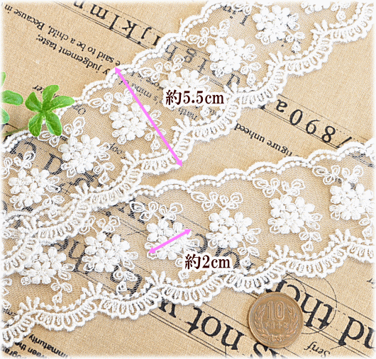 【最大1,000円OFFクーポン】【訳あり】チュールレース 55mm幅 約4.2m ■ リボン 5.5cm 生成り 幅広 花柄 フラワー ブーケ スカラップ チュール レース 手芸用レース 衣装 洋服 インテリア ハンドメイド 手芸 手作り ■