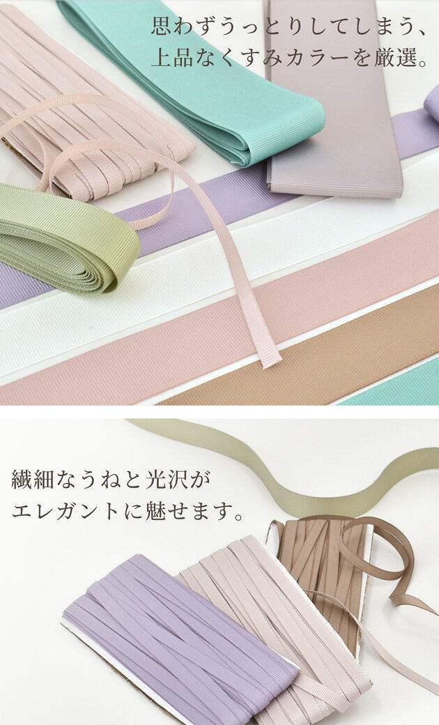 【先着150円OFFクーポン】くすみカラー の グログラン リボン 2~11m入 幅5種 全8色 ■ りぼん 7mm 16mm 25mm 38mm 50mm 無地 グログランテープ ヘアアクセサリー アクセサリー ラッピング ヘアゴム コサージュ シュシュ クラフト ハンドメイド 手芸 手作り rur1 ■