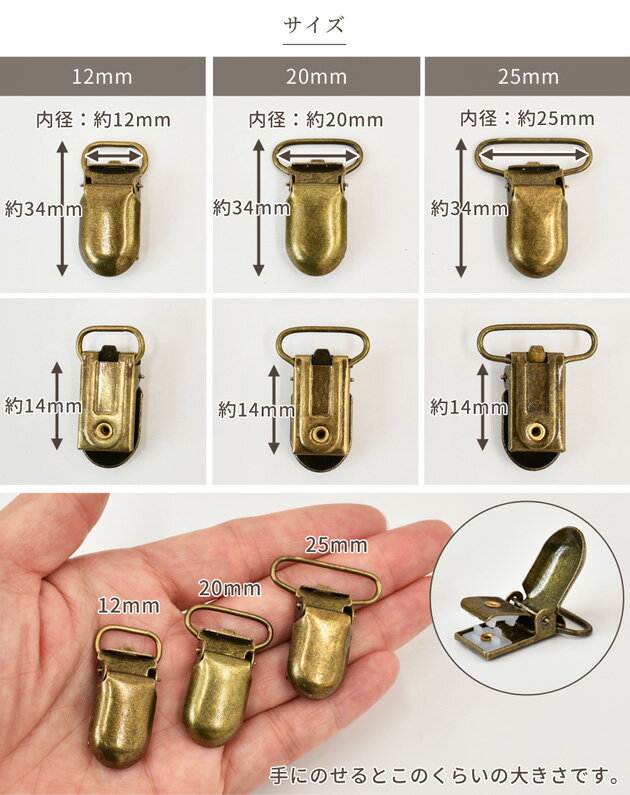 【先着150円OFFクーポン】【卸売り】サスペンダー金具 くわえカン 40個入 12/20/25mm 全3色 ■ サスペンダークリップ まとめ買い 問屋 業務用 留め具 くわえ金具 接続 エンドパーツ スカート パンツ キッズ バッグ かばん 持ち手 ハンドメイド 手芸 手作り ■