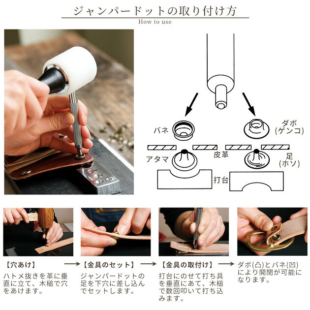 【先着150円OFFクーポン】クラフト社 ジャンパードット打 中 ・ 大 全2サイズ ■ 8285 8286 レザークラフト クラフト ジャンパー ドット ホック ボタン 革 道具 初心者 工具 革材料 打ち具 パーツ ハンドメイド 手芸 手作り ■