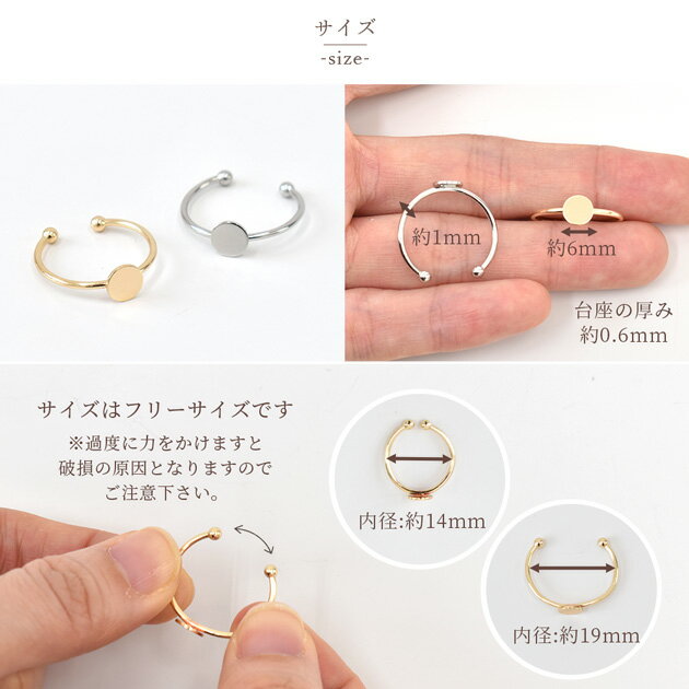 【先着150円OFFクーポン】リング パーツ 台座付き 2個 全2色 ■ 平皿付き 6mm ゴールド シルバー 指輪 おしゃれ 華奢 細い リングパーツ 指輪パーツ 金具 台 サイズ調整 レジン アレンジ アクセサリー ハンドメイド 手芸 手作り ■