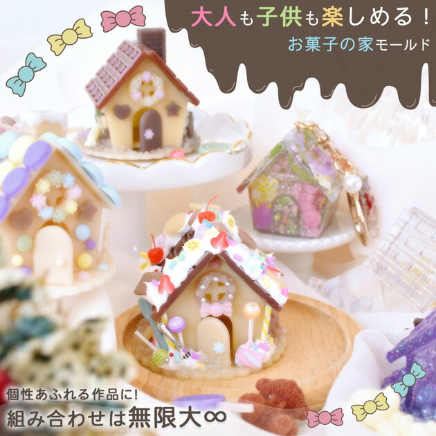 シリコン 型 モールド お菓子 の 家 MYmama オリジナル ■ シリコンモールド ミニチュア 立体 スイーツ ハウス ヘクセンハウス 組み立て チョコ クッキー キーホルダー 小物入れ シャカシャカ レジン レジン液 手作り ハンドメイド ■