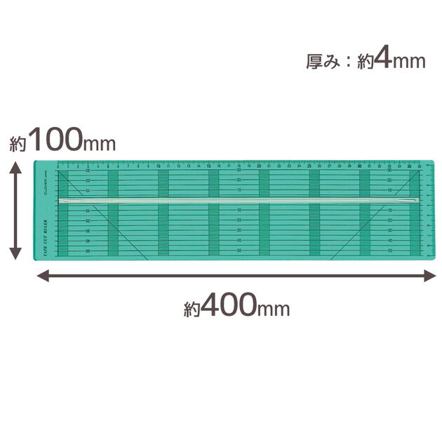 クロバー テープ カット 定規 10 × 40cm ■ Clover ロータリー カッター 45mm テープメーカー バイアス カット 布 生地 紙 ペーパー マット カッティング 物差し ものさし 直線 つまみ細工 バイヤス カルトナージュ クラフト ソーイング ハンドメイド 手芸 手作り ■