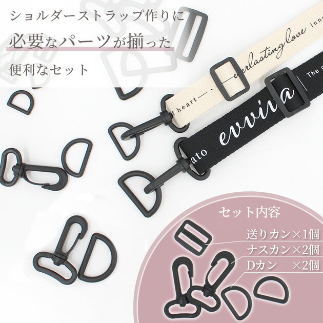 プラスチック ショルダー パーツ セット 6サイズ 1 ~ 10 組 ■ ブラック アジャスター 長さ調節 バッグパーツ カン 持ち手 テープ 材料 ナスカン Dカン 送りカン リュックカン バッグ サコッシュ ストラップ 入園 入学 手芸 手作り ハンドメイド ■
