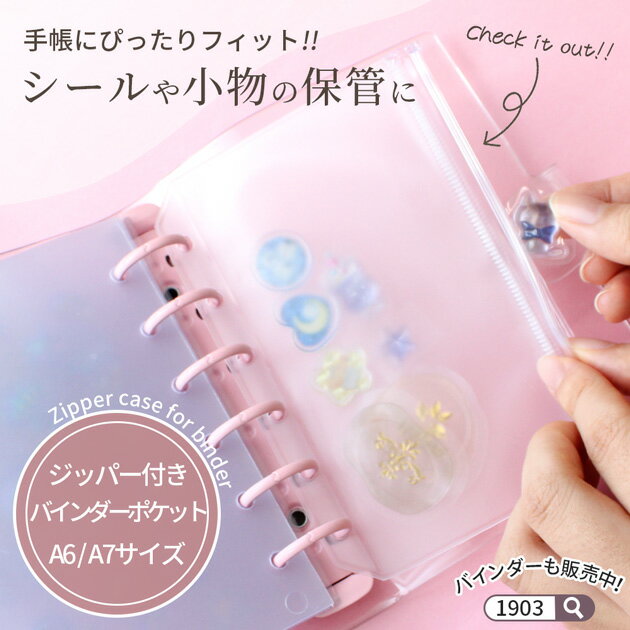 バインダー ポケット6穴 ジッパー付き 2~3枚 セット ■ シール帳 シール手帳 バインダー用 A5 A6 A7 ミニ6 ジッパー式ファイル袋 スライダーポーチ ジッパーフォルダー 袋 ポーチ リフィル ファイル マルチケース シール 文具 収納 手作り ■