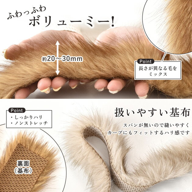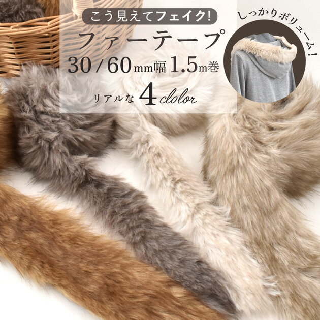 フェイクファー テープ 60mm幅 30mm幅 ミックス毛 全4色 ■ ファー ファーテープ フード パーカー テープ 装飾 コート ベスト 手袋 スリッパ 雑貨 衣装 サボ 手作り 手芸 ハンドメイド ■