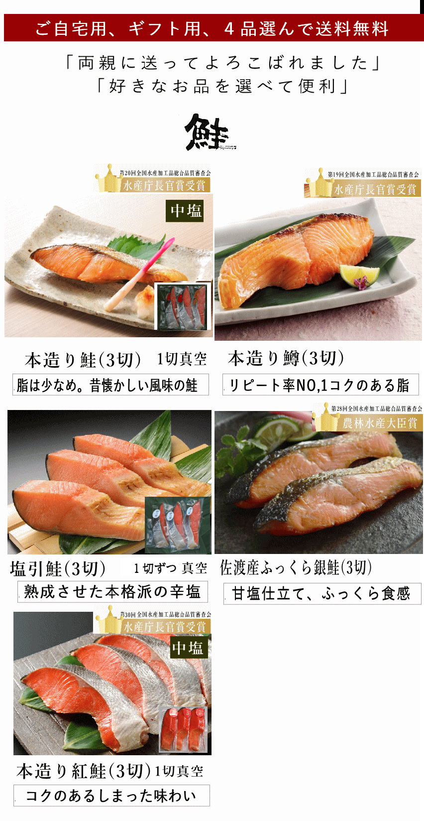 【月間優良ショップ】【干物セット 送料無料】鮭 干物 選んで セレクト4品... 鮭 ます サーモン サバ ニシン しまほっけ あじ 味噌漬け 西京漬け 塩麹漬け たらこ 明太子 干物 ギフト 冷凍 魚 切身 冷凍 鮭 お中元新潟 冷凍 魚 切身