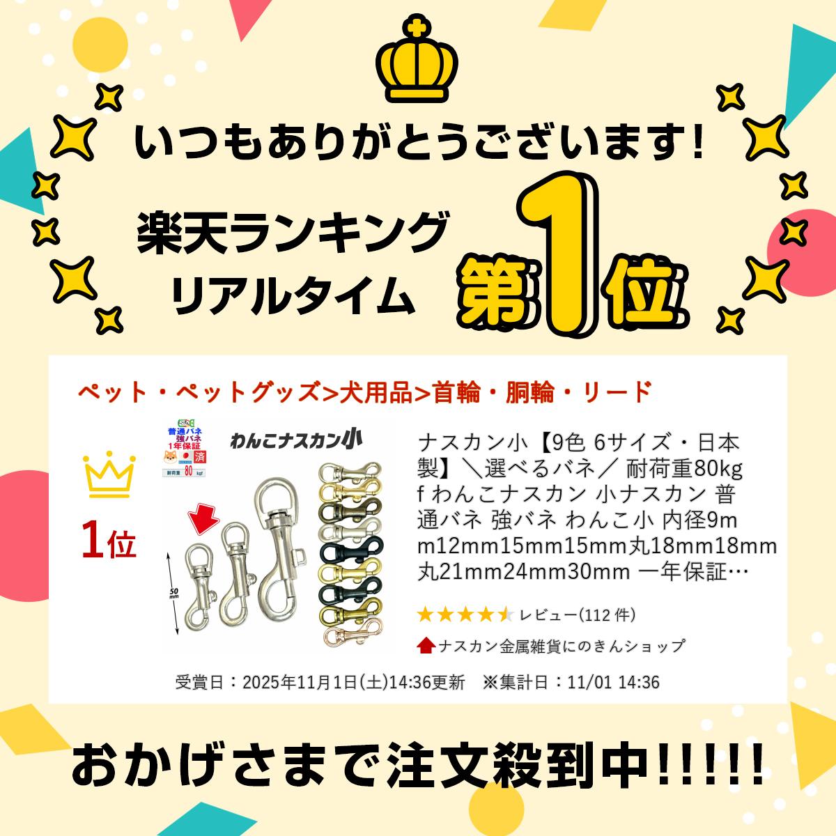 ナスカン小【9色 6サイズ・日本製】\選べるバネ/ 耐荷重80kgf わんこナスカン 小ナスカン 普通バネ 強バネ わんこ小 内径9mm12mm15mm15mm丸18mm18mm丸21mm24mm30mm 一年保証 引っかけ金具 金具 パラコード フック 小型犬 最適 頑丈 クラフト プロ 手作り にのきん
