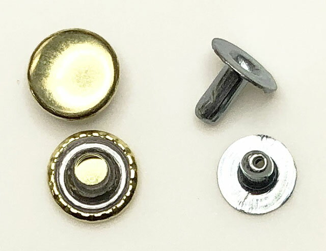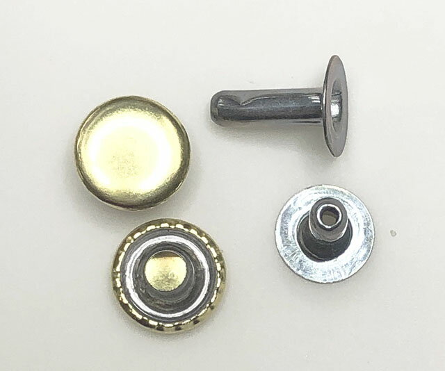 頭径(A)9mm/足径(B)・足長10mm/並足7mm座径(C)7.7mm。 ABKとは足が鉄製(A)で、頭は真鍮(B)、表面にキリンス(K)という透明のメッキをかけたカシメという意味です。キリンスメッキを掛けると、生地が露出しないので、メッキの持ちがよくなります。カシメると足が2〜3mm程度潰れて留めますからご注意ください。 *実際の商品と画像とは、色が異なることがあります。 *送料は1000個ならネコポス速達便。2000箱以上はヤマト運輸便でお送りします。 *足にはユニクロメッキ処理をしてます。明るいグレーのメッキがかかってます。ご承知の上、お買い上げ下さい。 大カシメ 片面 ABK 並足 足長 1000セット 大ロットが必要な方に、箱単位の販売も致します。サイズは並足と足長があり、足の長さが違います。 *サイズ:頭径(A)9mm/足径(B)・足長10mm/並足7mm座径(C)7.7mm。 *実際の商品と画像とは、色が異なることがあります。 *送料は1000個ならネコポス速達便。2000箱以上はヤマト運輸便でお送りします。 *足にはユニクロメッキ処理をしてます。明るいグレーのメッキがかかってます。ご承知の上、お買い上げ下さい。 並足(7mm)タイプ。足の色はもっと明るく、グレーに近い色してます。 足長(10mm)タイプ。足の色はもっと明るく、グレーに近い色してます。 横から見ると、長さの違いが良く分かります。足の色はこの画像の方が、実際の色に近いです。