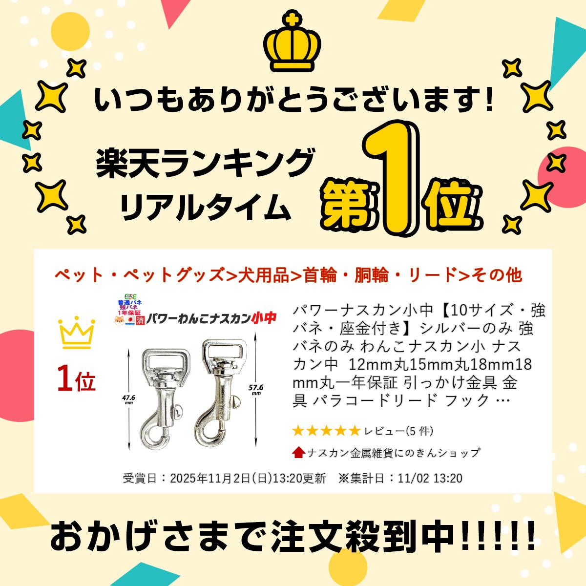 パワーナスカン小中【10サイズ・強バネ・座金付き】シルバーのみ 強バネのみ わんこナスカン小 ナスカン中 12mm丸15mm丸18mm18mm丸一年保証 引っかけ金具 金具 パラコードリード フック 小型犬 中型犬 最適 頑丈 クラフト 手芸 工芸 プロ向き 手作り キーホルダー にのきん