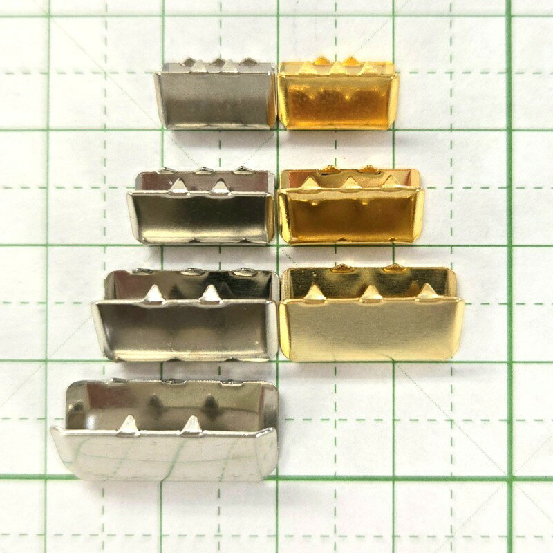 先止め金具【2カラー各サイズ・日本製】シルバー ゴールド 10mm12mm15mm18mm テープ止め さきどめ 端 カバー 挟む 端処理 リード端 金具 リュック 持ち手 バッグ 余り にのきん