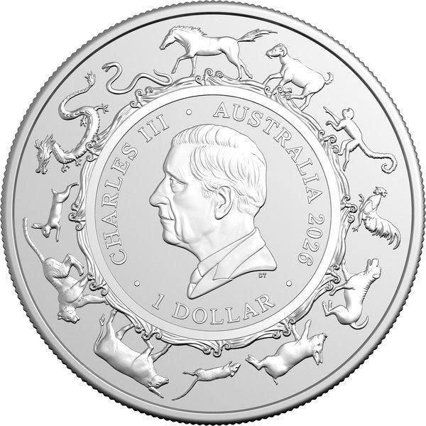 即納 2026 1オンス オーストラリア 干支:午(ウマ)年 銀貨 RAM製 1ドル (40mmクリアケース付き) 新品未使用