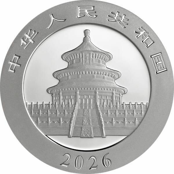 野口コインは中国金幣集団有限公司の正規販売店です。 中国人民銀行が発行する地金型銀貨の2026年版です。 コイン表側には北京市の天壇祈念殿、裏側にはパンダが描かれています。 裏側に描かれるパンダのデザインは毎年変更されています。 ・2026 30 gram China Panda .999 Silver Coin 限定: 5,000,000 枚 品位: 99.9%の銀製 直径: 40 mm 重量: 30 g 【型番】26PDSV30BU