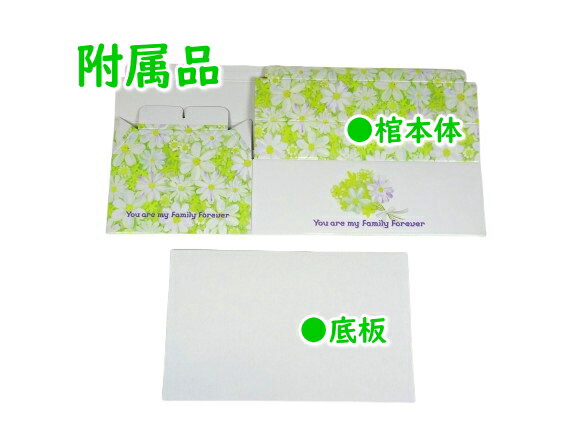 ダンボール製のペット用棺です。 折りたたみ式となっております。(組立は簡単です!) 花模様の棺。側面にはブーケが描かれています。 共に過ごした時間の想い・・・最後のお別れは花柄のかわいい棺で送ってあげてください。 ------------------------------------------ ■素材■ ダンボール ■附属品■ 棺本体(折り畳み式)簡単組立 強化用底板 ※布団や防水シーツは附属しておりません。 ■機能・性能■ 小型用(10kg未満) ■サイズ■ L44.6cm×W27.0cm×H21.0cm ------------------------------------------