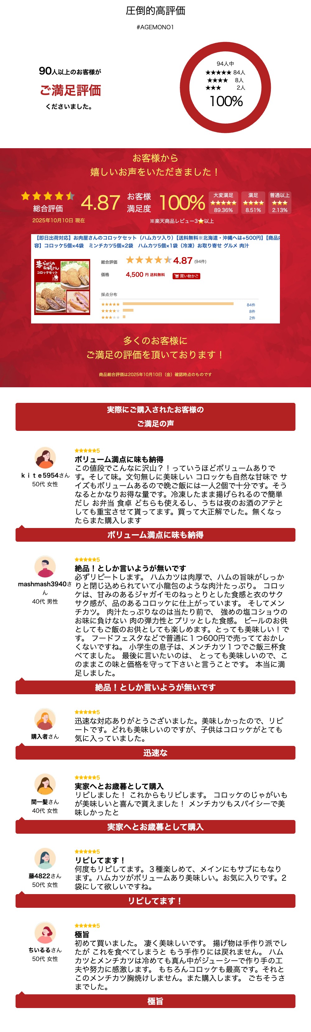 【即日出荷対応】お肉屋さんのコロッケセット(ハムカツ入り)【送料無料※北海道・沖縄へは+500円】【商品内容】コロッケ5個×4袋 ミンチカツ5個×2袋 ハムカツ5個×1袋(冷凍)お取り寄せ グルメ 肉汁