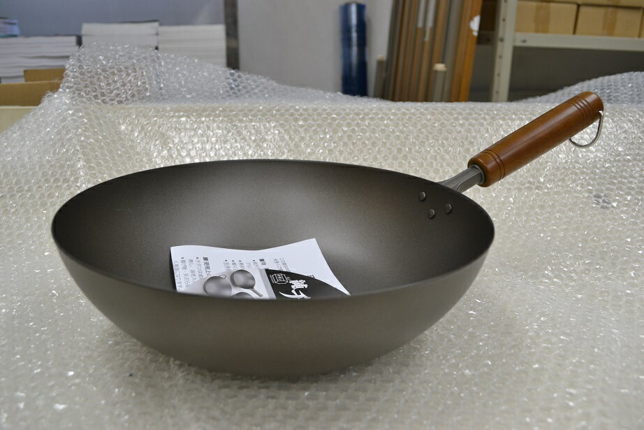 チタン 木柄 いため鍋 28cm /長谷元/軽い/軽量/中華なべ/日本製/おすすめ/業務用/店舗/片手/中華料理/チャーハン/手や腕への負担が軽減/中華鍋