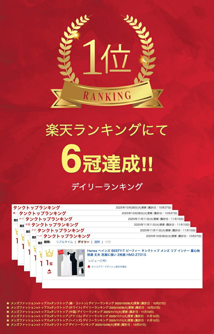 Hanes ヘインズ BEEFY-T ビーフィー タンクトップ メンズ リブ インナー 着心地快適 丈夫 洗濯に強い 2枚組 HM2-Z701S