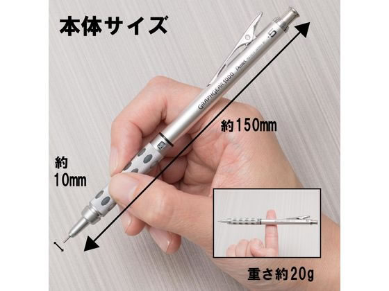 【重要:ご注文について】お客様のご都合による商品の交換・返品・数量変更は一切承っておりません。ご注文の際は慎重にお選びの上、ご注文願います。■ご注文の個数によっては、表示の出荷日目安よりも出荷まで日数を頂く場合がございます。納期については、事前にお問い合わせをお願い致します。また、当該商品は他店舗でも在庫を共有しておりますので、在庫更新のタイミングにより在庫切れの場合、やむを得ずキャンセルさせて頂く可能性があります。【送料について】『同梱区分C : 988円(沖縄・離島 2420円)』※『異なる同梱区分の商品』を一緒にご注文頂いた場合は、同梱が出来ません。別配送となり追加送料がかかりますので、ご注文後に訂正の上、ご連絡させて頂きます。【ご注意】事前の配達日付は一切ご指定頂けません。配達日時につきましては、お手数ですが出荷完了時にご案内する荷物問い合わせ番号をもとに、お客様より配送業者へ直接御調整をお願い致します。メーカーによるリニューアルに伴い、パッケージ・内容等が予告なく変更される場合がございます。掲載写真等がリニューアル前のものであっても、リニューアル後の商品が届いた場合、ご返品や交換等は承ることが出来ません。置き配は破損・汚損・紛失・盗難などの恐れがあるため、原則としてお断りしております。置き配による破損・汚損・紛失・盗難については保証ができかねますので、あらかじめご承知おきください。グラフギア1000 0.5 ぺんてる PG1015●芯径:0.5mm●長さ:150mm●材質:軸/アルミニウム、ノック/ステンレス、クリップ/鉄●広告文責:株式会社プロヴィジョン(tel:092-985-3973)