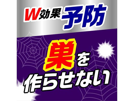 【重要:ご注文について】お客様のご都合による商品の交換・返品・数量変更は一切承っておりません。ご注文の際は慎重にお選びの上、ご注文願います。■ご注文の個数によっては、表示の出荷日目安よりも出荷まで日数を頂く場合がございます。納期については、事前にお問い合わせをお願い致します。また、当該商品は他店舗でも在庫を共有しておりますので、在庫更新のタイミングにより在庫切れの場合、やむを得ずキャンセルさせて頂く可能性があります。【送料について】『同梱区分C : 988円(沖縄・離島 2420円)』※『異なる同梱区分の商品』を一緒にご注文頂いた場合は、同梱が出来ません。別配送となり追加送料がかかりますので、ご注文後に訂正の上、ご連絡させて頂きます。【ご注意】事前の配達日付は一切ご指定頂けません。配達日時につきましては、お手数ですが出荷完了時にご案内する荷物問い合わせ番号をもとに、お客様より配送業者へ直接御調整をお願い致します。メーカーによるリニューアルに伴い、パッケージ・内容等が予告なく変更される場合がございます。掲載写真等がリニューアル前のものであっても、リニューアル後の商品が届いた場合、ご返品や交換等は承ることが出来ません。置き配は破損・汚損・紛失・盗難などの恐れがあるため、原則としてお断りしております。置き配による破損・汚損・紛失・盗難については保証ができかねますので、あらかじめご承知おきください。クモの巣消滅ジェット 450mL 4本パック アース製薬曇りにくいシリコーンコートで 雨にも強く効果3ヵ月※使用環境・気象条件により異なります。有効成分+シリコーンコートの効果で、クモを忌避して巣を張らせません。直接スプレーすれば、素早くクモを駆除。(卵も駆除できます)。撥水成分シリコーン配合なので、雨にも強く効きめが長持ちします。強力ジェット噴射なので、軒下などの手の届かない所にも楽々噴射できます。セアカゴケグモにも!●屋外専用●内容量(1本):450ml●注文単位:1パック(4本)※メーカーの都合により、パッケージ・仕様等は予告なく変更になる場合がございます。●広告文責:株式会社プロヴィジョン(tel:092-985-3973)