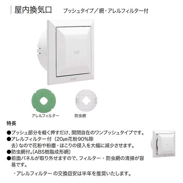KS-8640PRFKA-SG 屋内換気口 角型 プッシュタイプ (網・アレルフィルター付) 150φ