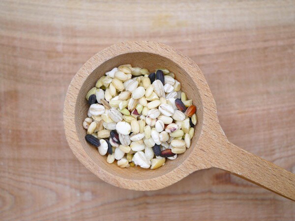全部国産 20穀米 1kg お弁当やおにぎりなどに毎日たべて頂き、飽きが来ないように赤米、黒米などでの色付きを極力抑えました。 おたまやが原料選定からブレンドまで行った栄養満点の20穀米です。 【おたまや二十穀米の使い方】 (1)白米3合をとぎ炊飯器の目盛どおりに水加減致します。(3合の場合) (2)大さじスプーン3杯(約30g)と水を約60ml〜 70ml加えます。 ※配水量は目安です。慣れて来ましたらお好みで増減して下さい。 加水量は本品の配合量(g)の2倍(ml)ですが、お好みで調整して下さい。 ※本品は水洗いの必要はありません。 (3)軽くかき混ぜていつも通り炊飯して下さい。 ■お米を美味しく炊くために・・・40分〜1時間ほど漬けておく事をお勧め致します。 炊きあがりは黒米、赤米などにより、ごく薄く色付きます。 ※原料をご確認頂き、アレルギーをお持ちの方はご使用をお控え下さいませ。 名称 雑穀米 原材料 赤もち米(九州産)、緑米(岩手産)、黒米(九州産)、挽割大豆(九州産)、もち麦(九州産)、もちきび(北海道産)、青玄米(九州産)、もちあわ(岩手産)、玄米(九州産)、アマランス(岩手産)、赤うるち米(愛媛産)、挽割黒大豆(九州産)、はと麦(岩手産)、もち玄米(九州産)、ひえ(青森産)、挽割青大豆(九州産)、丸麦(九州産)、挽割小豆(北海道産)、胚芽押し麦(九州産)、黒うるち米(国産) 内容量 1kg(約8.5升分) 賞味期限 1年 保存方法 冷暗所保存 栄養成分表示 (100gあたり) カロリー 351kcal タンパク質 14.5g 脂質 3.7g 炭水化物 62.7g 糖質 43.8g ※この表示値は目安です。 製造者 有限会社おたまや(山形県米沢市)