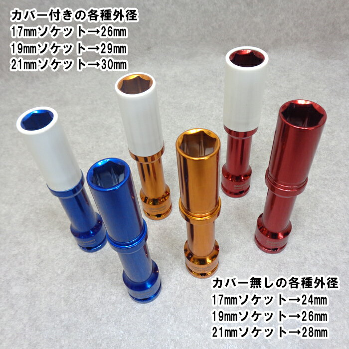 アルミホイール用 薄口 ロングソケット 深リム ディープリム 対応 インパクトエクステンションソケット ホイールナットソケット セット 17mm 19mm 21mm 差込角 1/2 プロテクター付