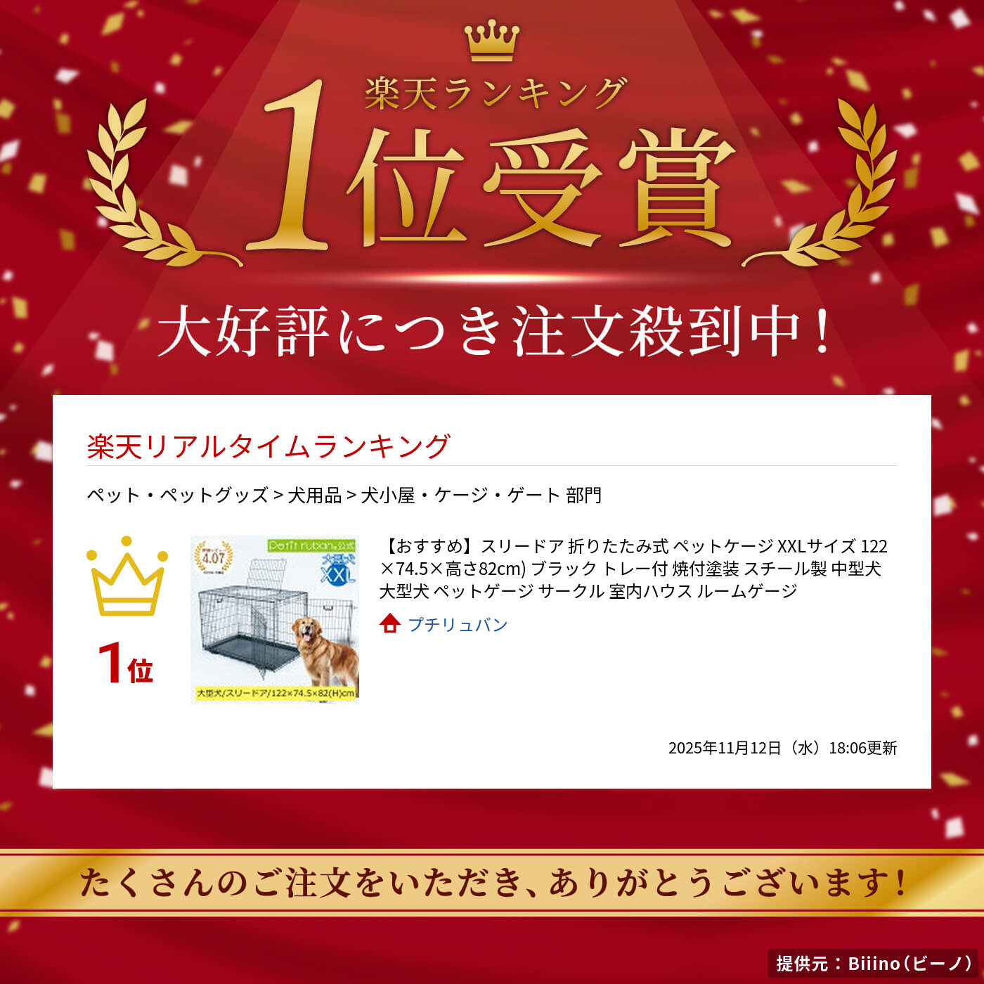 【おすすめ】スリードア 折りたたみ式 ペットケージ XXLサイズ 122×74.5×高さ82cm) ブラック トレー付 焼付塗装 スチール製 中型犬 大型犬 ペットゲージ サークル 室内ハウス ルームゲージ