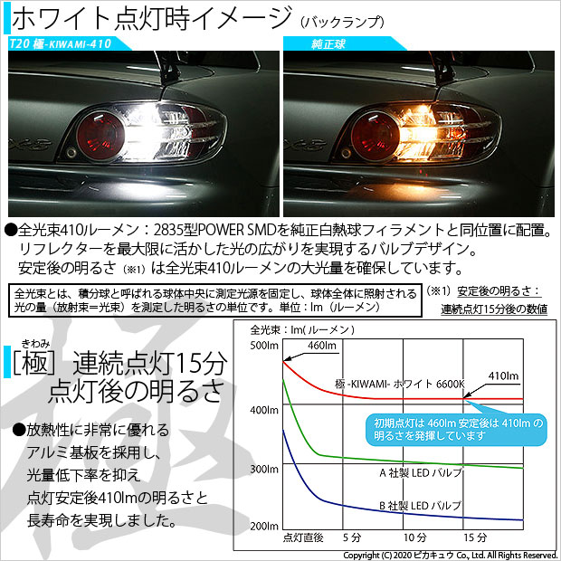 【後退灯】マツダ RX-8 SE3P 前期 バックランプ対応LED T20S T20シングル 極-KIWAMI- きわみ 全光束410lm ウェッジシングル球 LEDカラー:ホワイト 色温度6600K 2個入 6-A-2 実車確認済み