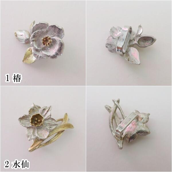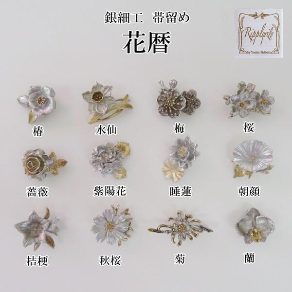 【帯留め】銀細工【花暦】季節の花 手作り【日本製】銀 シルバー 和小物 かわいい季節の花のデザイン♪和装 着物 浴衣 小紋 三分紐 帯締め お出掛け 散策 和装小物【ITO】